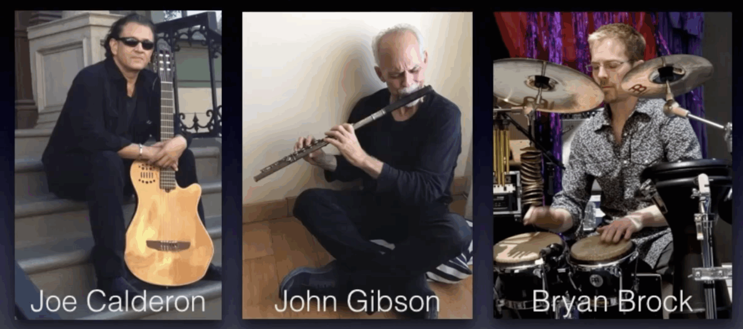 CGB Project is a three-piece fusion group consisting of Joe Calderon (guitar), John Gibson (flute) and Bryan Brock (percussion). The project came together by fortuitous circumstances after the three met while playing in Los Angeles. The inspiration for the project was born from the men playing together but also, while playing with other random musicians whose line-up changed nightly.